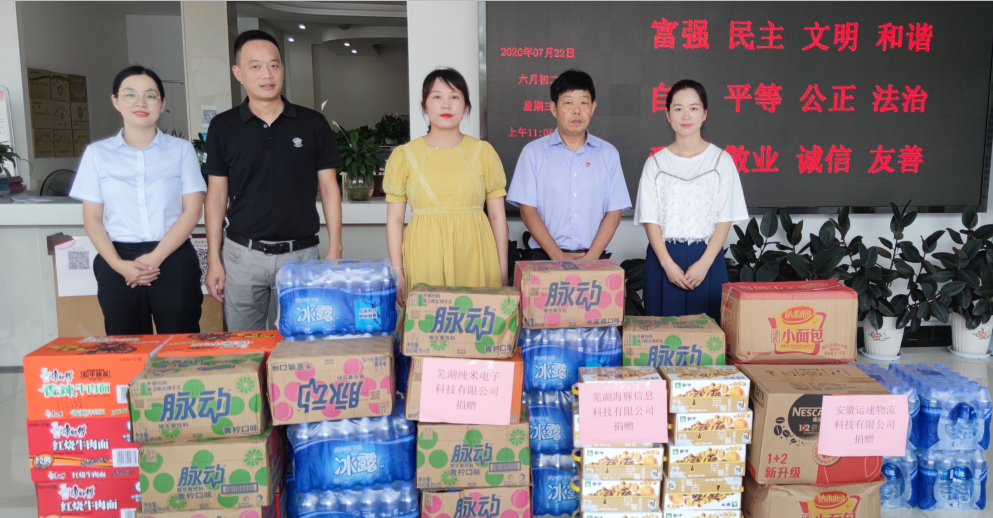 隨著汛情加重,7月22日,園區(qū)繼7月16日組織7家企業(yè)開展愛心捐贈后再次組織純米科技、海豚科技、運速物流3家企業(yè)向大礱坊街道捐獻共計50余件的保障物資。同日,在市科技局的帶領(lǐng)下,安徽礱坊科技發(fā)展有限公司副總經(jīng)理卞國琛代表園區(qū)前往無為市泉塘鎮(zhèn)泉塘社區(qū)進行脫貧攻堅和抗洪防汛捐款慰問,貢獻一份力量。